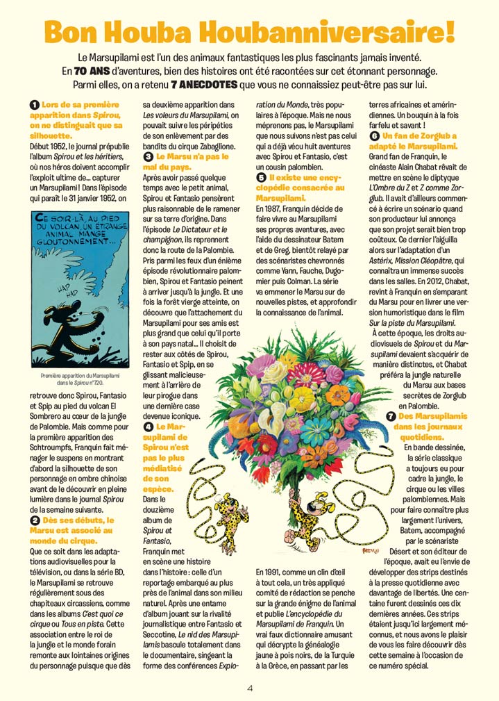 Le Marsupilami est l’un des animaux fantastiques les plus fascinants jamais inventé. En 70 ans d’aventures, bien des histoires ont été racontées sur cet étonnant personnage. Cette semaine, le journal Spirou lui souhaite bon Houba Houbanniversaire !
