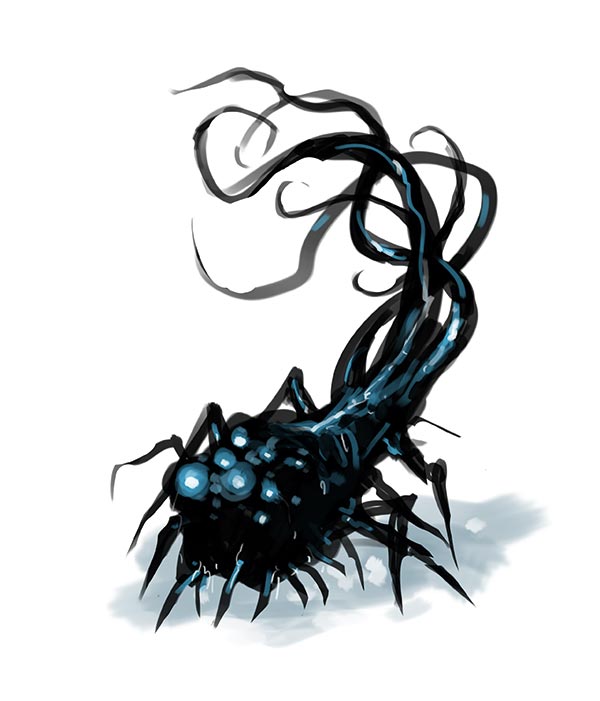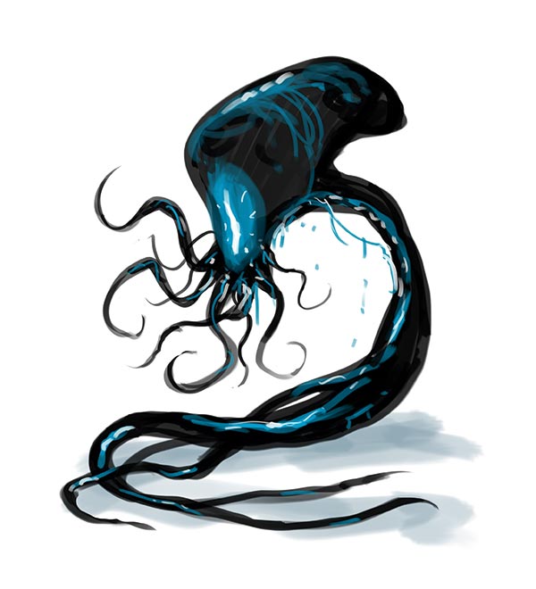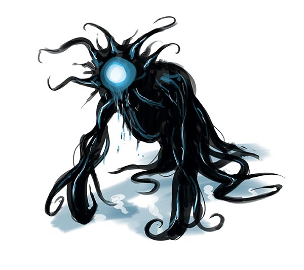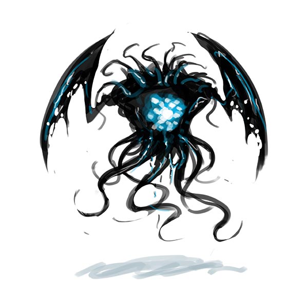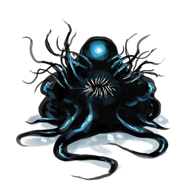 DJIEF : Comme pour les autres créatures de notre série, Stéphane m’a aiguillonné pour la création du Bogeyman en me faisant découvrir le film d’horreur « Slender Man », mettant en scène ce personnage aux bras élancés et à la taille monstrueuse… « Slender Man » m’a beaucoup plu et je m’en suis grandement inspiré pour faire le Bogeyman. Pour les besoins de ses apparitions dans les cauchemars de Minus, je l’ai traité sous une forme vaporeuse lui conférant un côté fantasmagorique et créant un lien avec la brume produite par Yog-Sothoth.