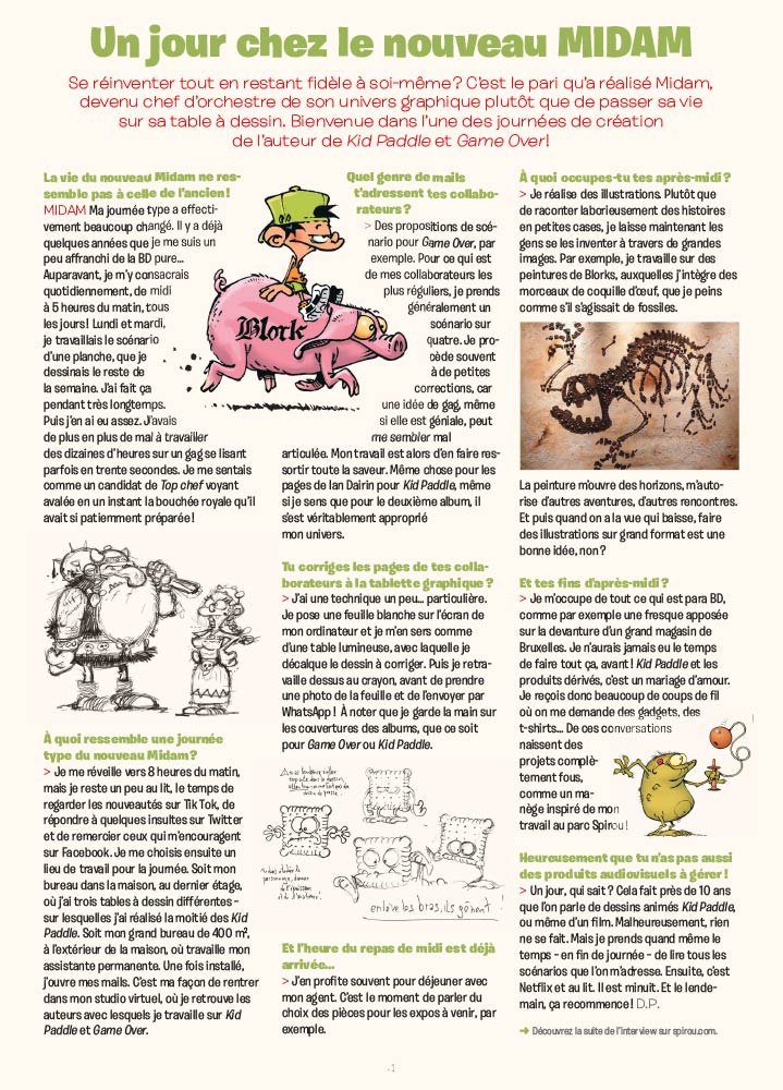 Se réinventer tout en restant fidèle à soi-même ? C’est le pari qu’a réalisé Midam, devenu chef d’orchestre de son univers graphique plutôt que de passer sa vie sur sa table à dessin. Cette semaine, le journal Spirou vous propose de découvrir l’une des journées de création de l’auteur de Kid Paddle et Game Over !