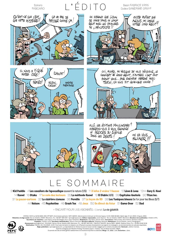 Demander aux cavaliers de l’apocadispe de réfléchir (avec sérieux) à comment sauver la nature, ce n’est pas nécessairement une bonne idée… La preuve, cette semaine, dans le journal Spirou !