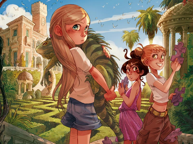 Comme toujours, dans les aventures des sœurs, il y a un animal « totem ». Pour « La villa des mystères », c’est un iguane !