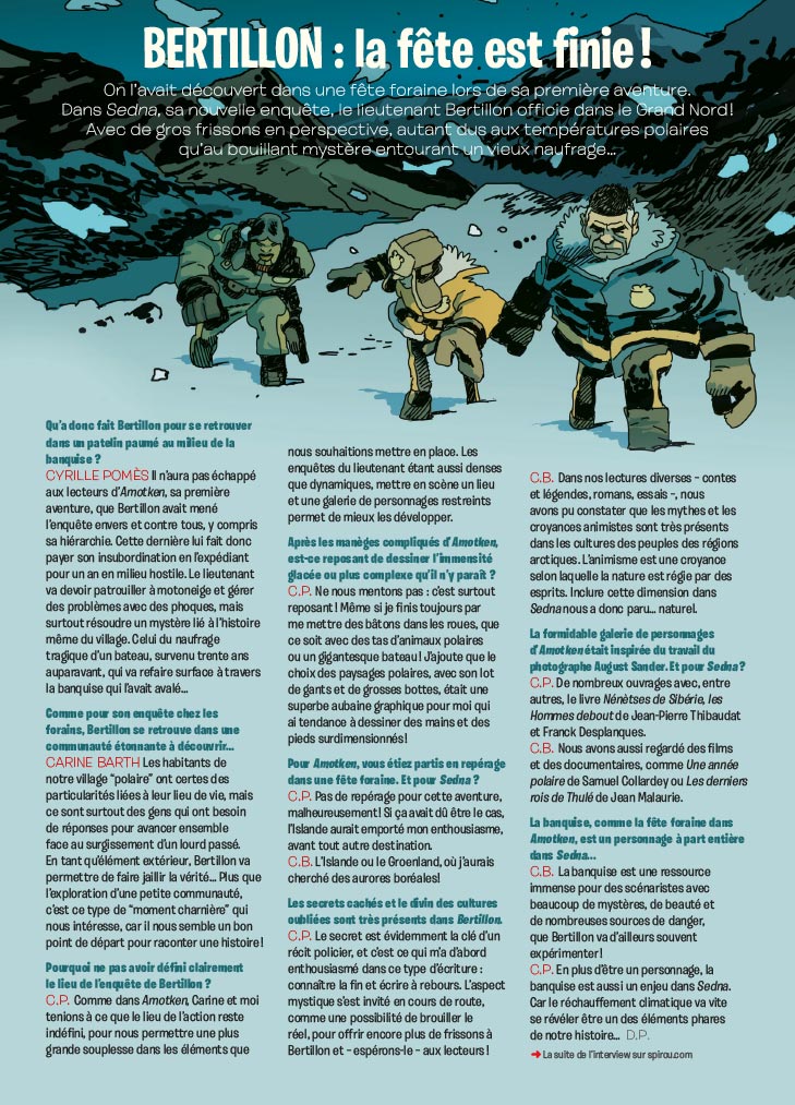 Le lieutenant Bertillon, que vous avez découvert dans le journal Spirou (et dont la première enquête paraît en album le 3 mai !), est de retour ! Cette fois, c’est aux températures polaires du Grand Nord et à un bouillant mystère qu’il va devoir faire face…