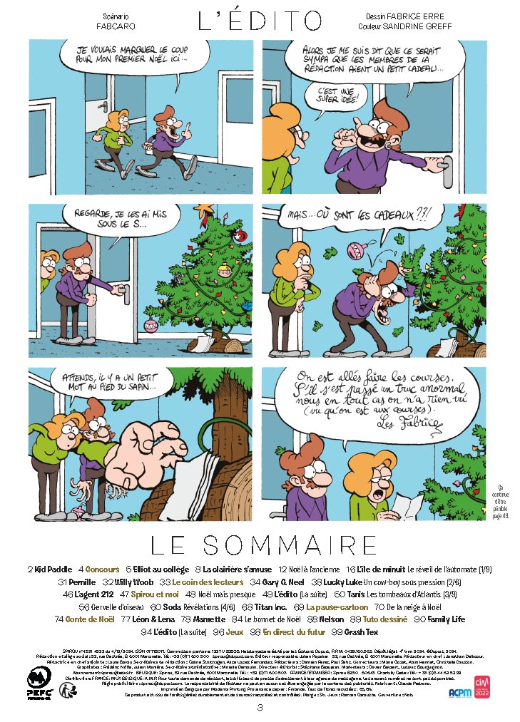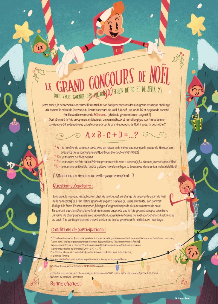 Le traditionnel numéro double spécial Noël du journal Spirou est disponible en kiosque et en librairie dès aujourd’hui (et jusqu’au 01/01/2025).