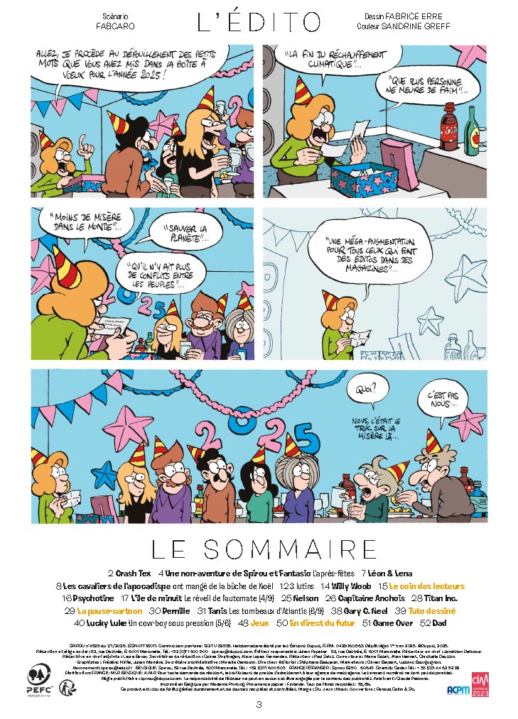 Pour bien démarrer cette nouvelle année, le journal Spirou vous propose de découvrir « l’après-fêtes », une non-aventure de Spirou et Fantasio par Sti et Renaud Collin. Au programme : repos et calme absolu (ou presque) !