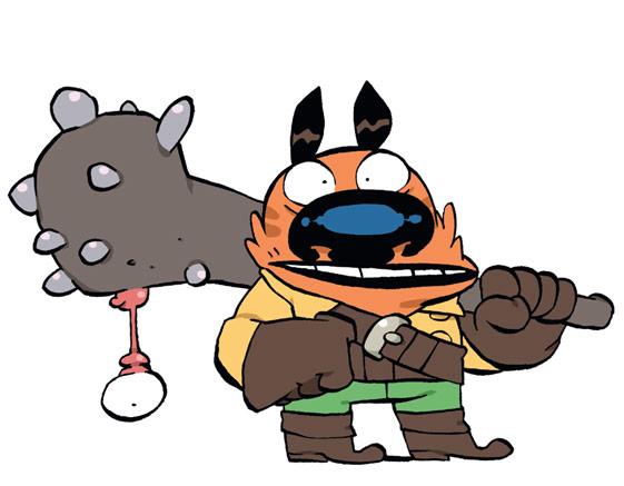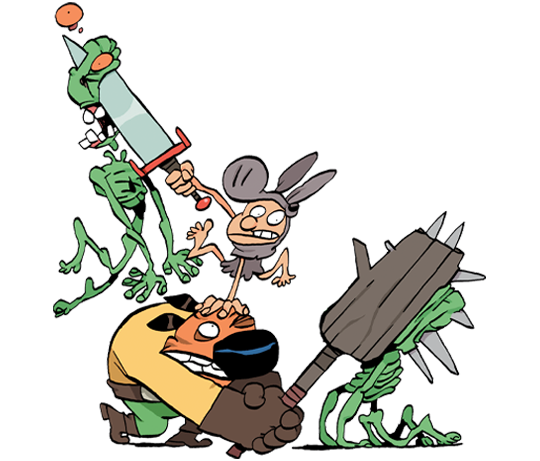 Raowl n’y va pas par quatre chemins : il tranche, il découpe, il raccourcit, il décapite tout ce qui se dresse entre lui et le baiser d’une princesse… Tebo réinvente les contes de fées avec un plaisir manifeste. En détournant les codes traditionnels du genre, il crée une bande dessinée haute en couleur, pleine de tripes, de répliques savoureuses et de personnages pittoresques.