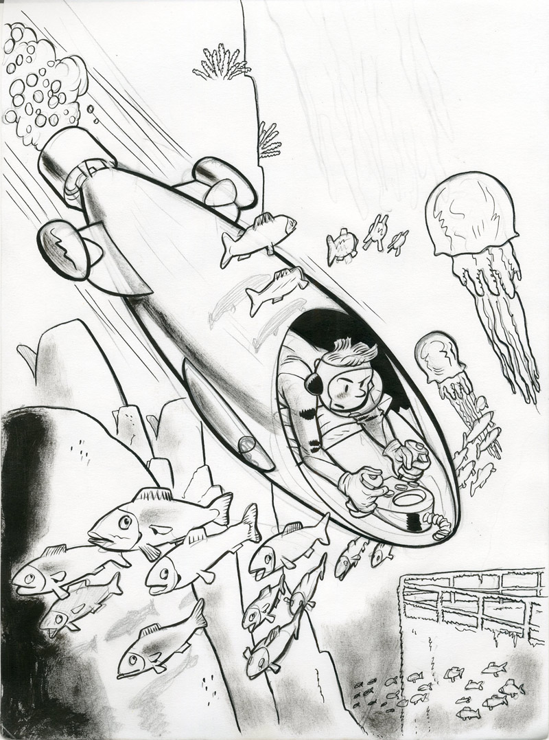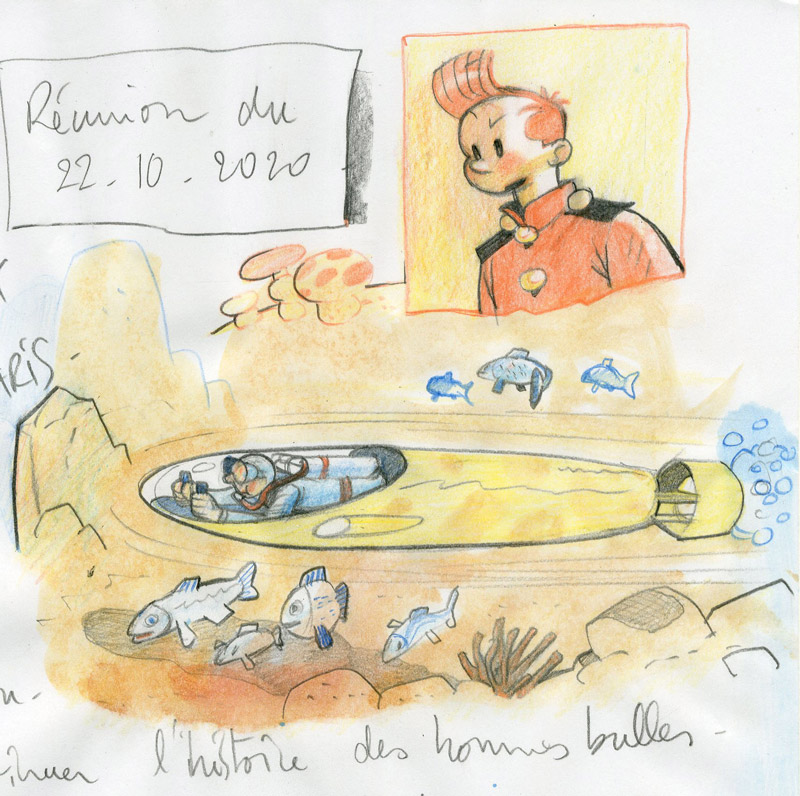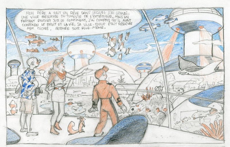 Sophie Guerrive : Même chose pour moi : j’ai passé beaucoup de temps à lire des classiques de la BD à la bibliothèque municipale, au nombre desquels Calvin et Hobbes et Mafalda, deux sources d’influence pour moi. Avant d’attaquer notre scénario, j’ai lu ou relu beaucoup de Spirou. Comme je connaissais bien « Le repaire de la murène » et « Spirou et les hommes-bulles », les images sous-marines de Korallion, m’étaient restées familières.